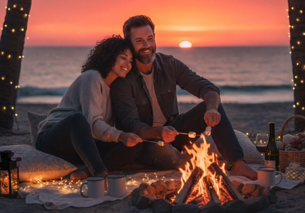 Pack beach blankets, layers for temperature changes, sunscreen, and comfort items like wine glasses if planning picnics. Bring a headlamp, portable speaker for music, and a camera to capture memories of your romantic escape.